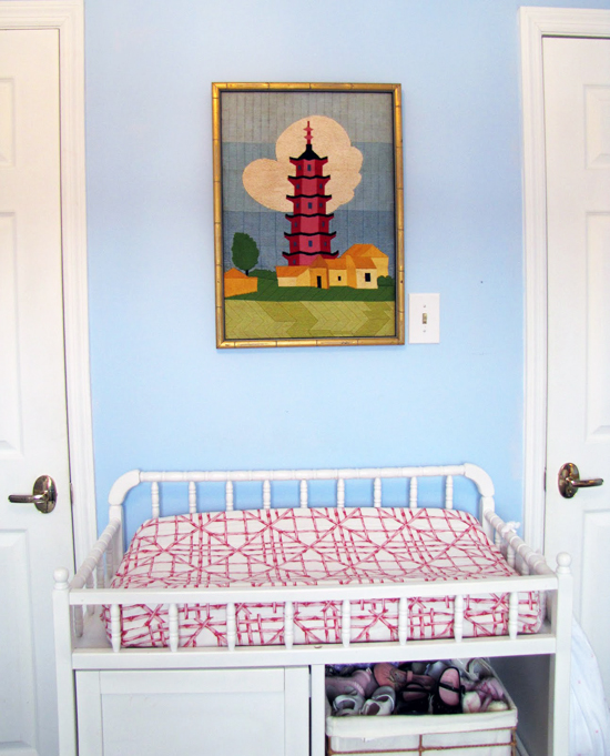 She then crafted this changing table cover from a king size pillowcase. Clearly, she allows nothing to go to waste!