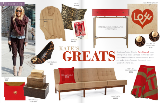 I have to say that I love every part of the magazine from the beginning to the end, but stopped in mid page turn when I saw these spreads in their Shopping Cart section. I find oodles of inspiration with fashion and home decor matchups like these and that why I do them here on BluLabel Bungalow in my GET THE LOOK series.