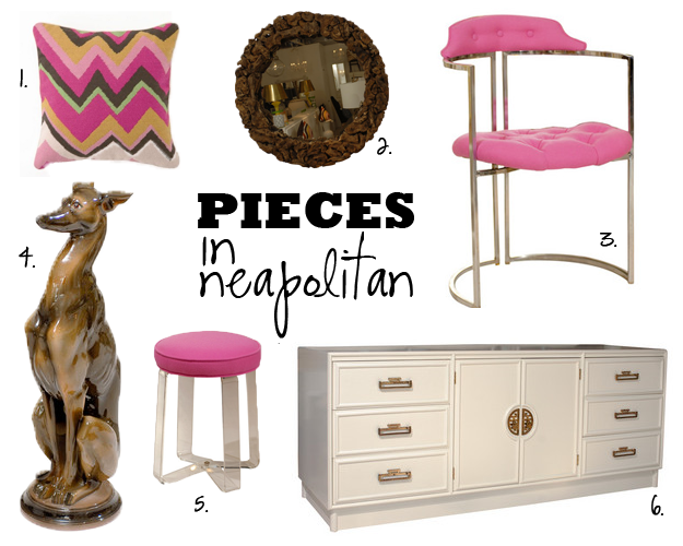 Finally, a very special thanks to Lee Kleinhelter of Pieces for sharing her thoughts with BluLabel Bungalow in the Tastemaker Tuesday series.  Visit Pieces online or in store for amazing eye candy as seen below in my “PIECES IN NEAPOLITAN” inspiration board. Inspired by cool summer treats, I’ve compose a few of my favorite finds in strawberry, chocolate, and vanilla. Where else can you get such decadent fare and with zero fat?