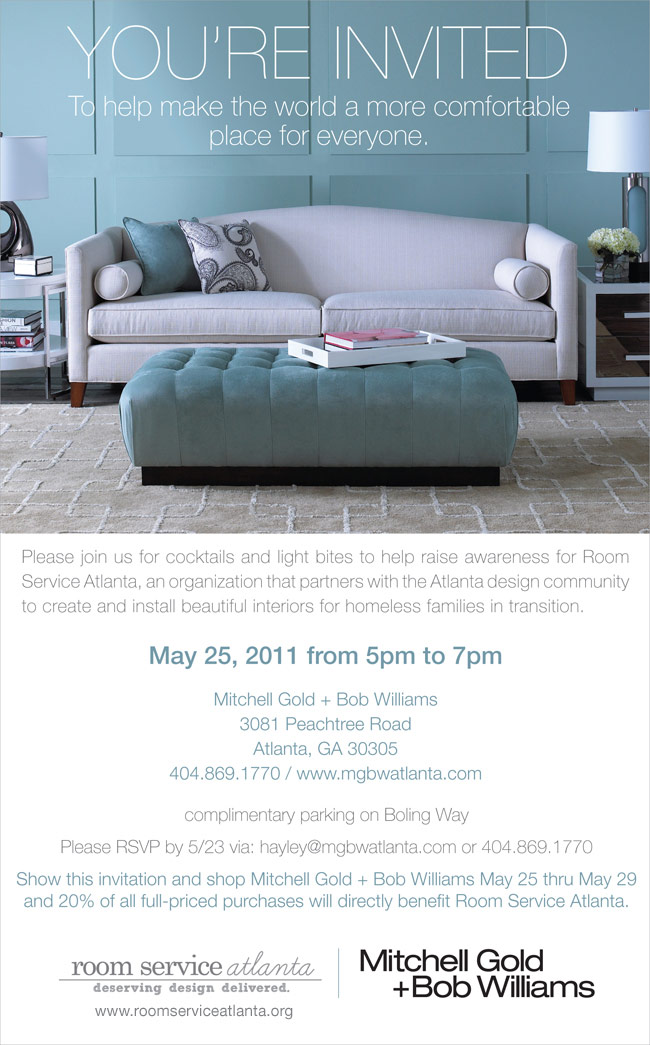 I’ll be running around today preparing for our Room Service Atlanta Wrap Party sponsored by Mitchell Gold + Bob Williams Atlanta. If you haven’t RSVP’d there is still time. Simply send an email to: hayley@mgbwatlanta.com. See you there!