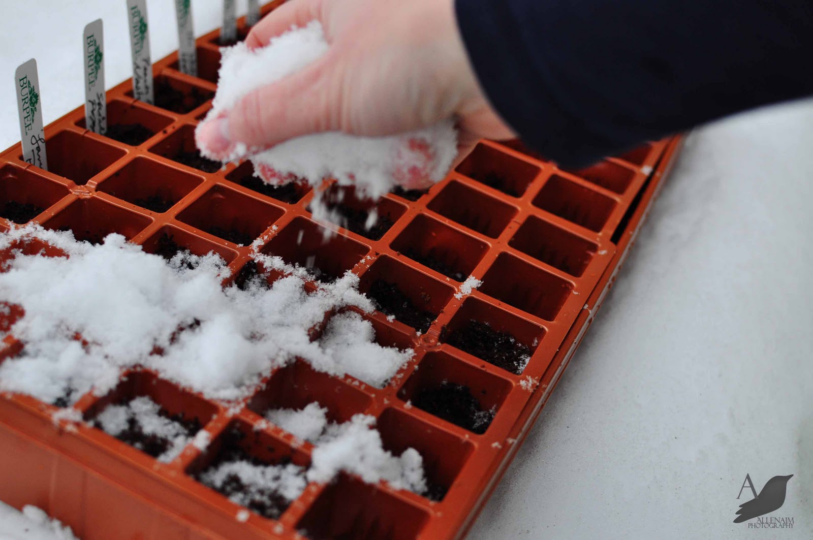 Does all that snow scare you?  It shouldn’t.  That’s the way seeds sleep in the natural world.  Under a nice bed of snow.  They will freeze and then thaw with a nice long watering from that snow.  Once it warms up enough, the seeds will know exactly when to germinate and you have saved yourself 2 square feet of window space in your home!